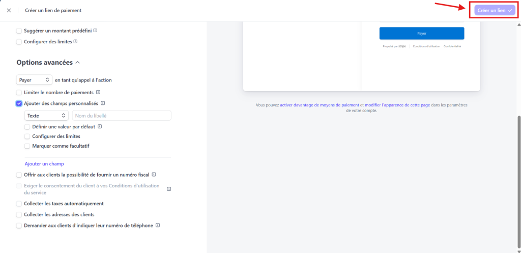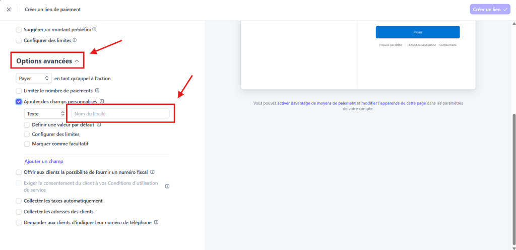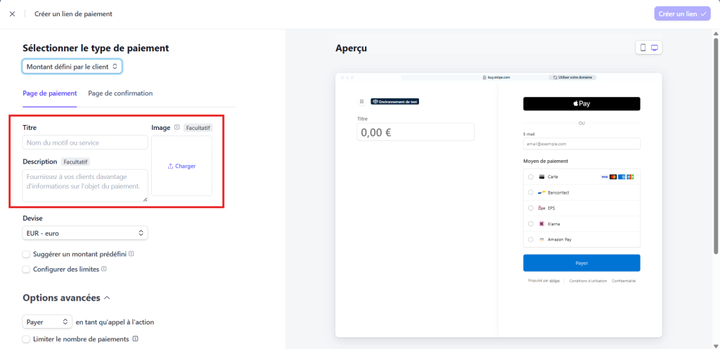 - Description : Ajoutez une précision pour que le client comprenne bien l’objet du paiement.
